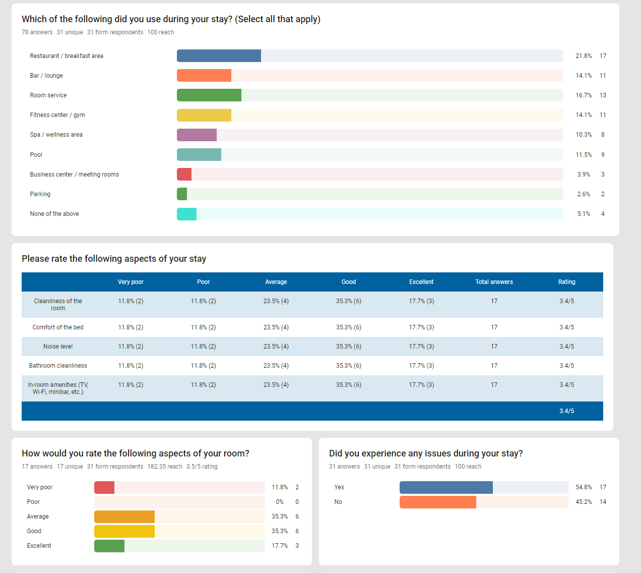 يمكننا اختيار نوع عناصر التقرير لتضمينها في التقرير سواء كانت رسومات بيانية أو محتوى نصي مأخوذ من إدخالات النص للمستجيبين.&#x20;