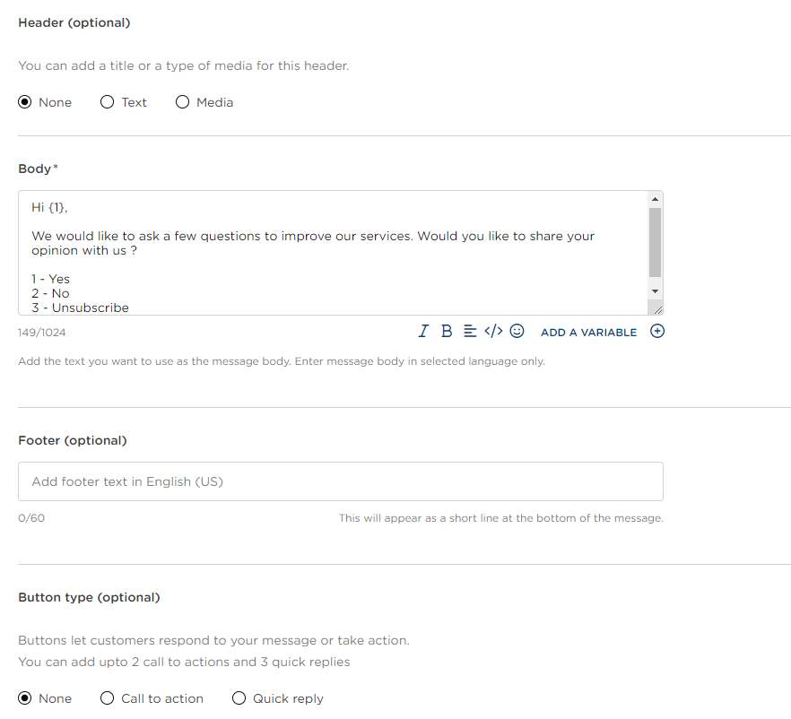 As such we recommend to configure a template message in Unifonic account that would be as follow:&#x20;