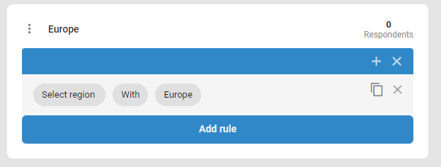Im folgenden Beispiel haben wir eine Umfrage, in der die Befragten ihre Region angegeben haben. Wenn Sie nur die Ergebnisse aus Europa mit anderen teilen möchten [Benutzern](https://docs.ngsurvey.com/de/multi-user-management/users) wenn sie auf die Reporting-/Datenexport-Funktionen Ihrer Umfrage zugreifen.