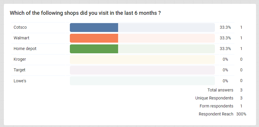 Die **Befragtenreichweite** Der Prozentsatz basiert auf der Anzahl der Befragten, die die Umfrage durchgeführt und diese Frage mit mindestens einer Antwort tatsächlich beantwortet haben.**.**&#x20;