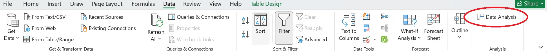 In Excel verwenden Sie für die Erstellung einer einfachen statistischen Tabelle das **Data Analysis** Tool, das sich oben rechts unter dem **Data** Ribbon befindet.