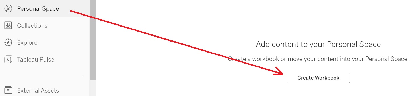 * Navigieren Sie in Tableau Online zu Ihrem **Personal Space** oder **Projekt**.