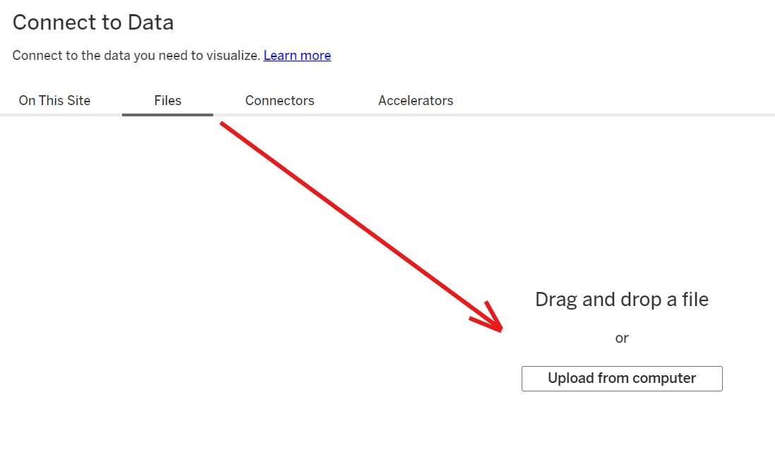 * Wählen Sie im Fenster "Connect to data" die **Files** Option einschalten.
