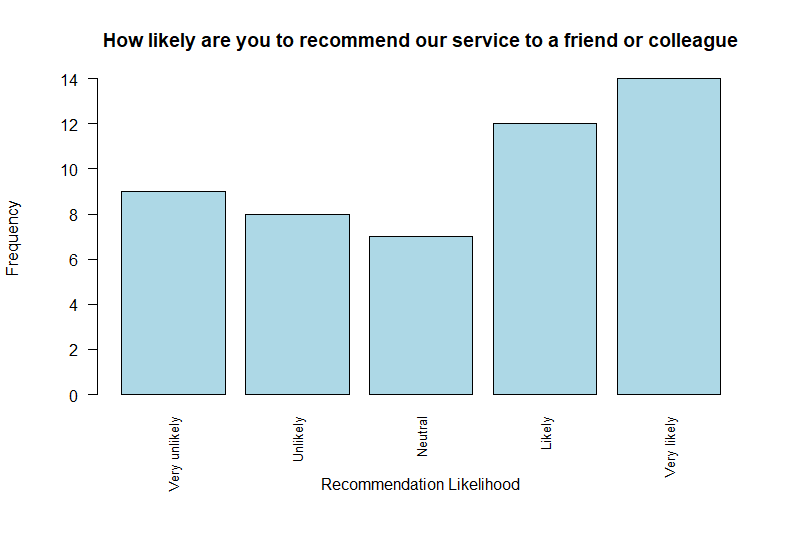 main = "How likely are you to recommend our service to a friend or colleague",